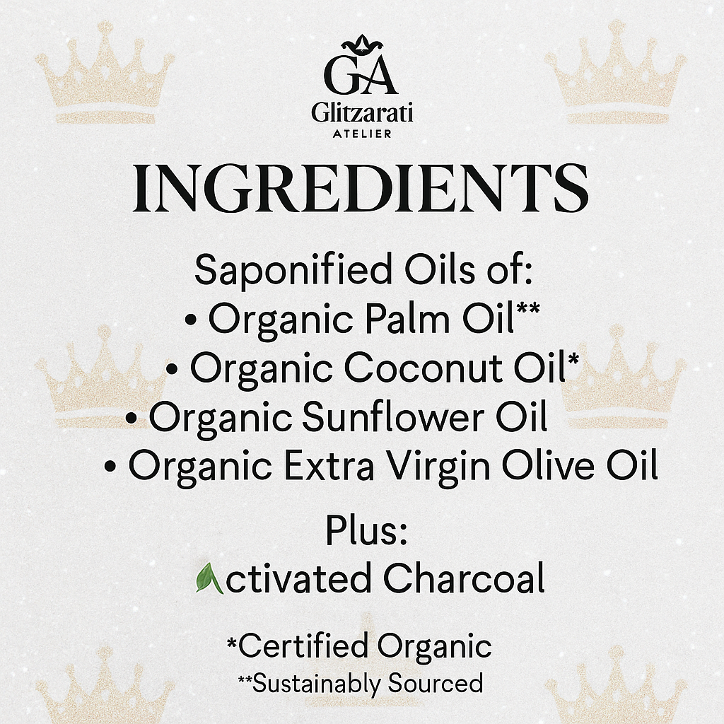 Charcoal Detox by Glitzarati Atelier is skincare in its purest form—simple, unscented, and powerfully cleansing. Designed for those who love a minimalist routine, this fragrance-free bar features activated charcoal to help cleanse and refresh the skin while delivering a bold, natural black finish—without any added colorants.